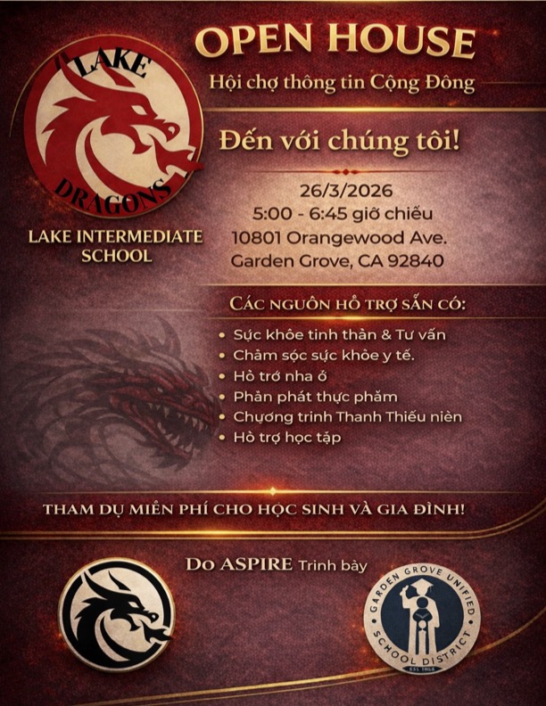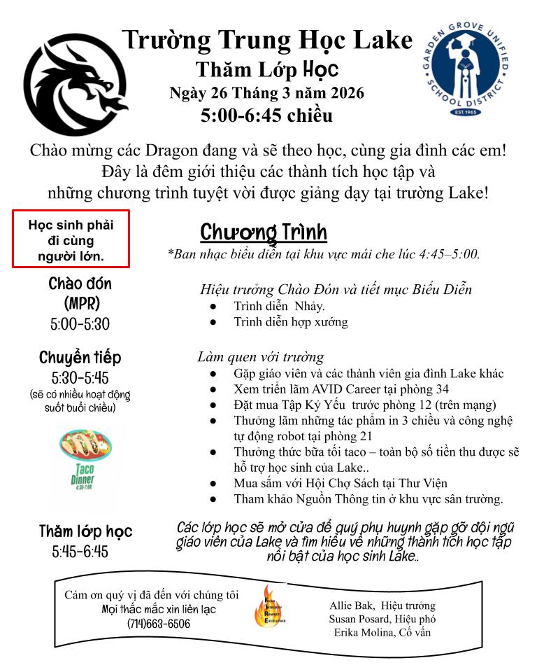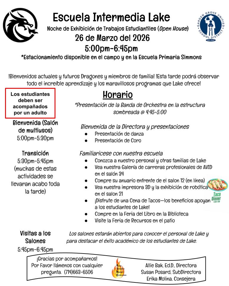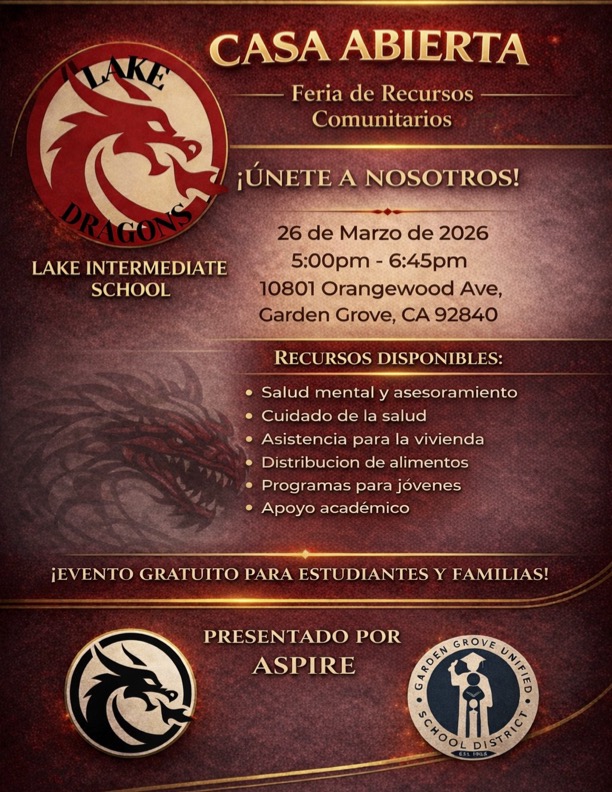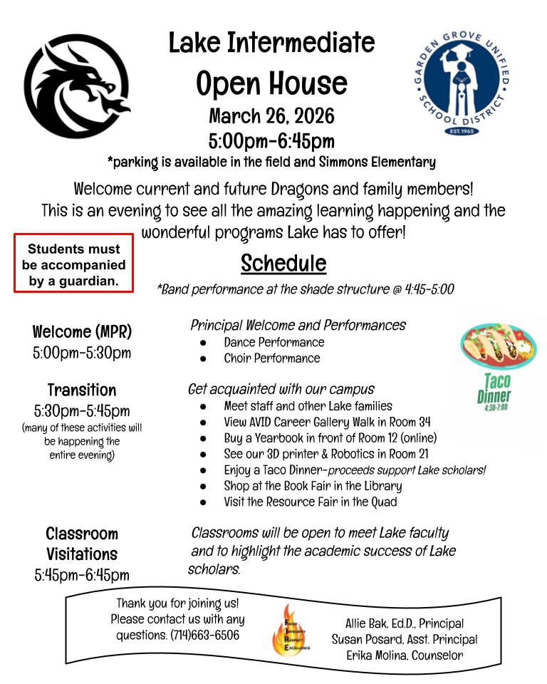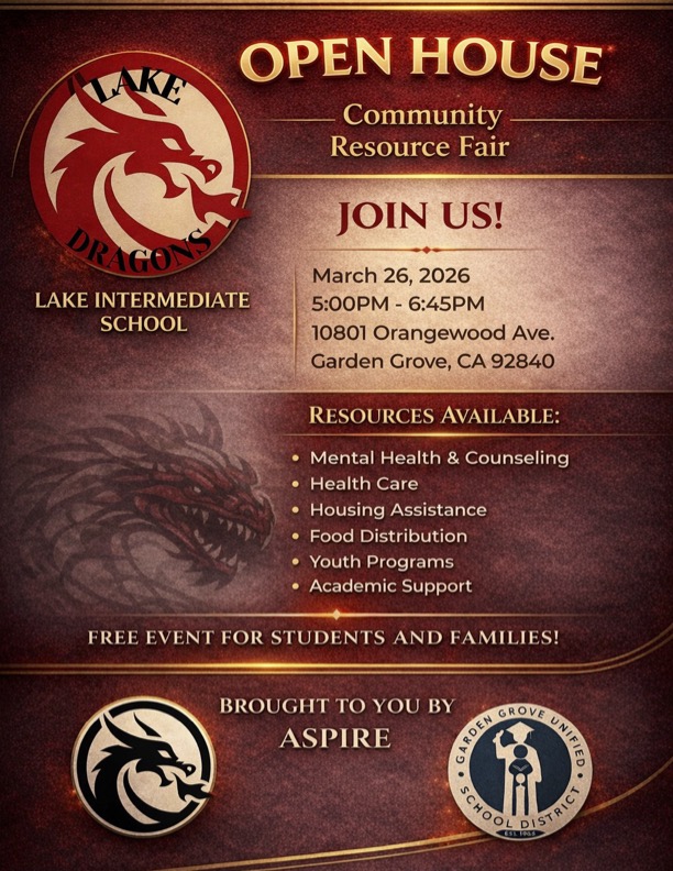 Lake Intermediate's Open House & Community Resource Fair will be taking place on Thursday, March 26 at 5:00 PM - 6:45 PM.